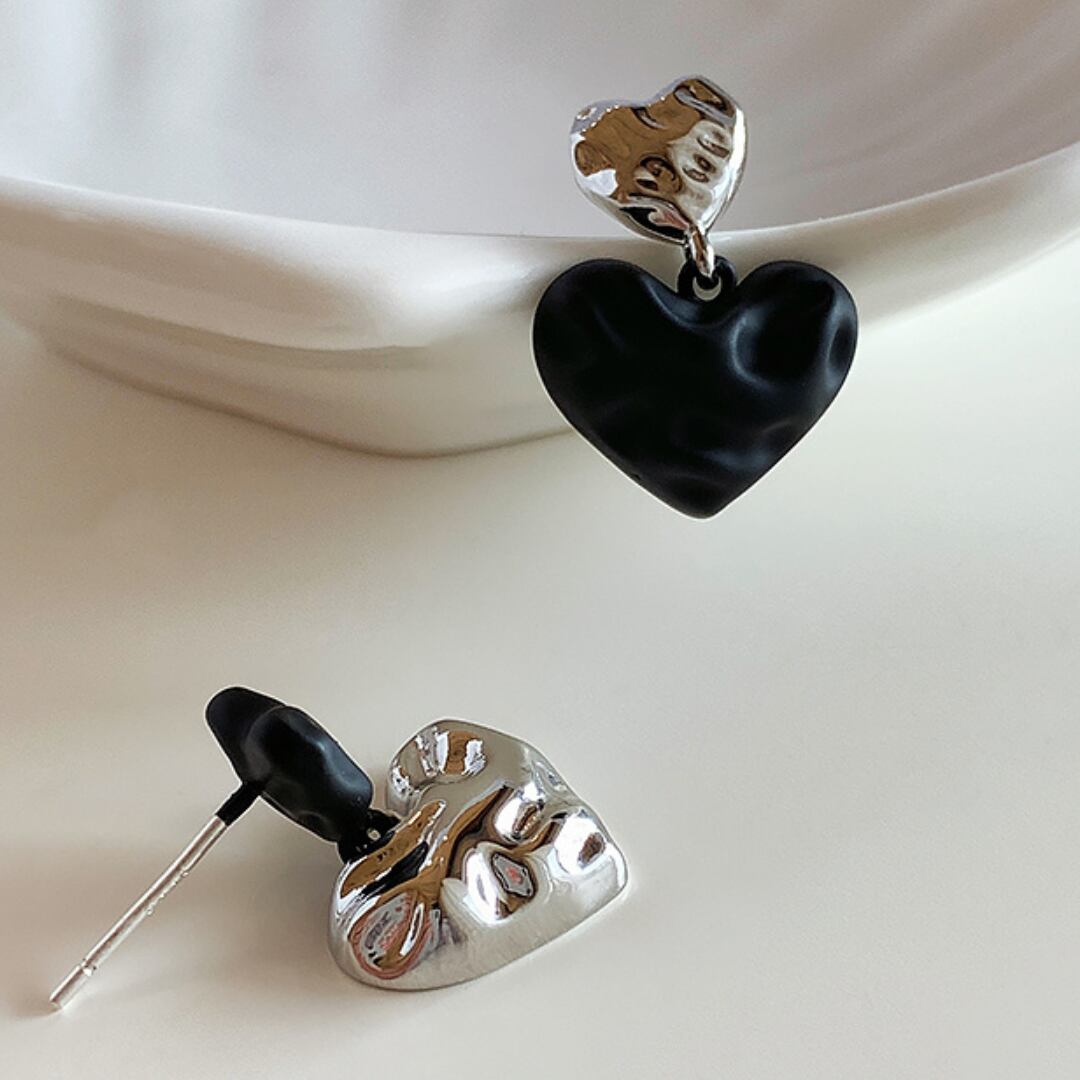 エレガントなダブルハートデザインのモノトーンピアスです。シンプルでありながらも目を引く存在感があり、カジュアルからフォーマルなシーンまで、どんなスタイルにもマッチします。モノトーンの配色が、あなたの魅力を引き立て、顔周りを華やかに演出します。軽やかなつけ心地で、長時間の着用でも快適さを保ってくれます。